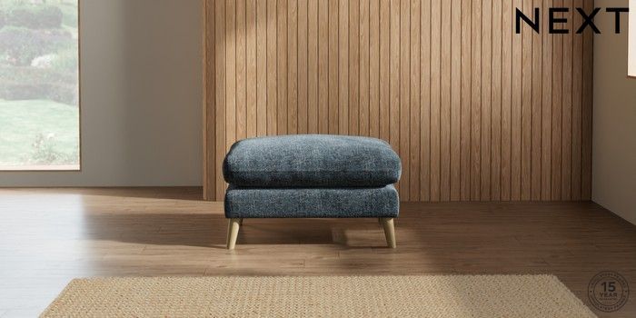 6.12.1 Buy Orlo Relaxed Sit Footstool Chunky Chenille Dark Navy Blue Retro Tapered - Light from the Next UK online shop Click here to use our accessible website