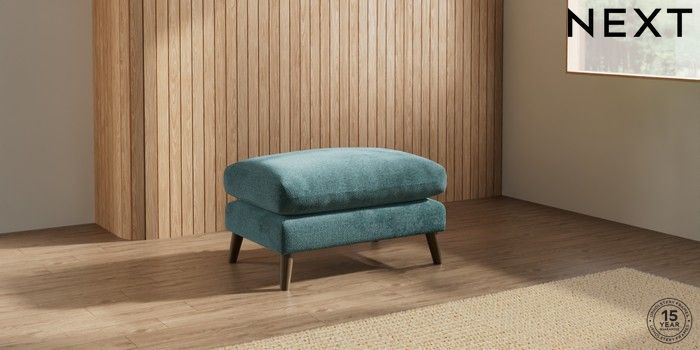 6.12.1 Buy Orlo Relaxed Sit Footstool Chunky Chenille Mid Teal Green Retro Tapered - Mid from the Next UK online shop Click here to use our accessible website