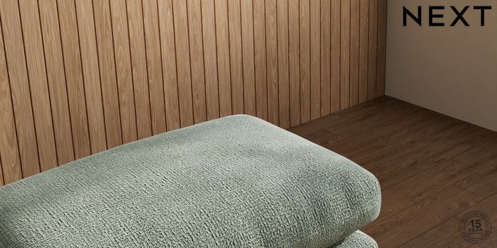 6.12.1 Buy Orlo Relaxed Sit Footstool Chunky Texture Mid Forest Green Retro Tapered - Dark Brown from the Next UK online shop Click here to use our accessible website