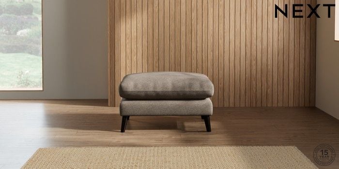 6.12.1 Buy Orlo Relaxed Sit Footstool Chunky Weave Dark Natural Retro Tapered - Dark from the Next UK online shop Click here to use our accessible website