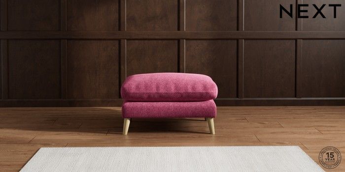 6.12.1 Buy Orlo Relaxed Sit Footstool Cotswold Chenille Dark Raspberry Pink Retro Tapered - Light from the Next UK online shop Click here to use our accessible website