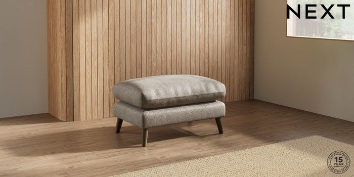7.0.3 Buy Orlo Relaxed Sit Footstool Cotswold Chenille Mid Mink Brown Retro Tapered - Mid from the Next UK online shop Click here to use our accessible website