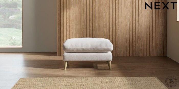 6.12.1 Buy Orlo Relaxed Sit Footstool Cotswold Chenille Oyster Retro Tapered - Light from the Next UK online shop Click here to use our accessible website