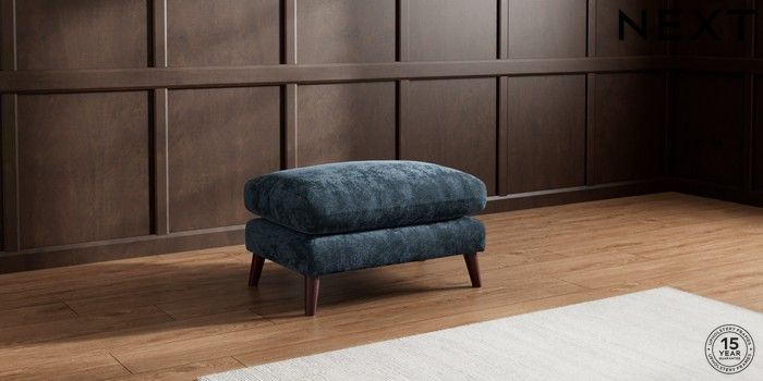 6.12.1 Buy Orlo Relaxed Sit Footstool Distressed Velour Midnight Blue Retro Tapered - Dark Brown from the Next UK online shop Click here to use our accessible website