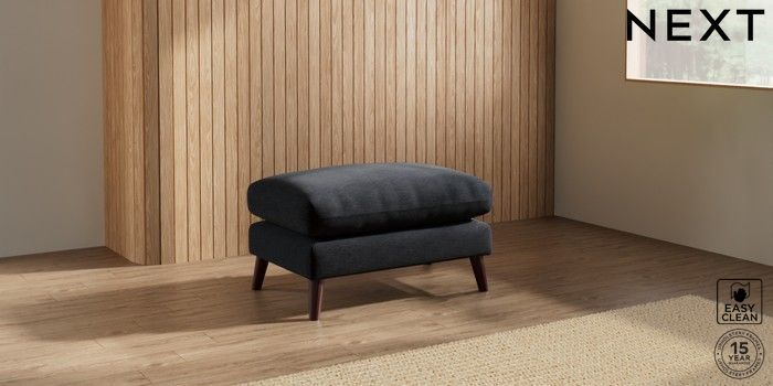 6.12.1 Buy Orlo Relaxed Sit Footstool Fine Chenille Easy Clean Black Retro Tapered - Dark Brown from the Next UK online shop Click here to use our accessible website