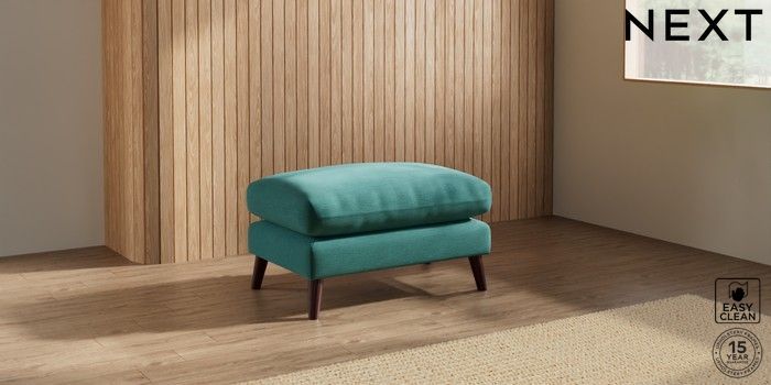 6.12.1 Buy Orlo Relaxed Sit Footstool Fine Chenille Easy Clean Dark Juniper Green Retro Tapered - Dark Brown from the Next UK online shop Click here to use our accessible website