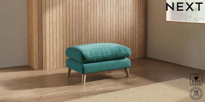 6.12.1 Buy Orlo Relaxed Sit Footstool Fine Chenille Easy Clean Dark Juniper Green Retro Tapered - Light from the Next UK online shop Click here to use our accessible website