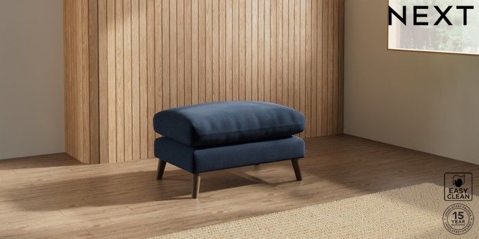 6.12.1 Buy Orlo Relaxed Sit Footstool Fine Chenille Easy Clean Dark Navy Blue Retro Tapered - Mid from the Next UK online shop Click here to use our accessible website
