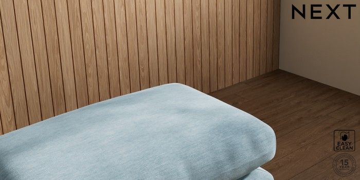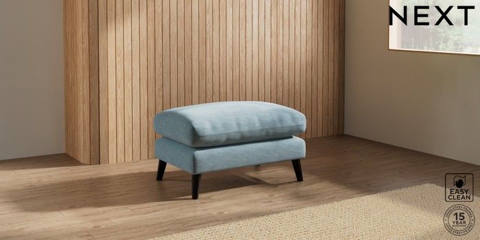 6.12.1 Buy Orlo Relaxed Sit Footstool Fine Chenille Easy Clean Mid Blue Retro Tapered - Dark from the Next UK online shop Click here to use our accessible website