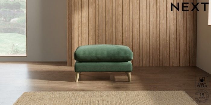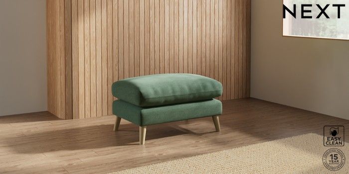 6.12.1 Buy Orlo Relaxed Sit Footstool Fine Chenille Easy Clean Mid Khaki Green Retro Tapered - Light from the Next UK online shop Click here to use our accessible website