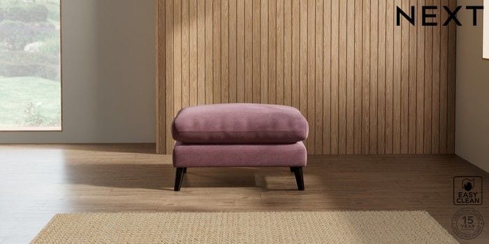 6.12.1 Buy Orlo Relaxed Sit Footstool Fine Chenille Easy Clean Mid Mulberry Purple Retro Tapered - Dark from the Next UK online shop Click here to use our accessible website