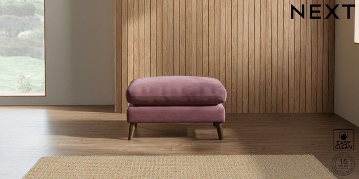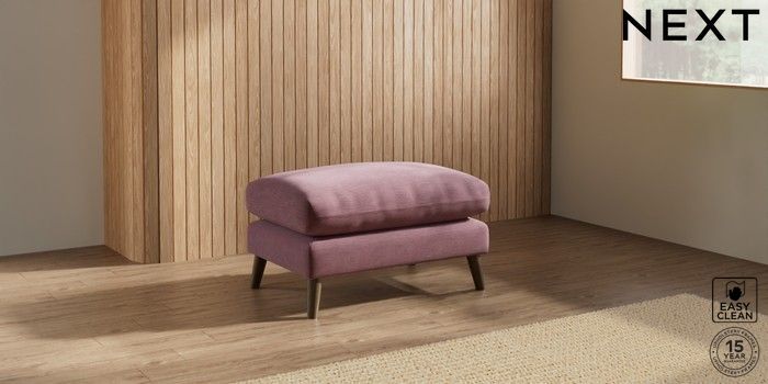 6.12.1 Buy Orlo Relaxed Sit Footstool Fine Chenille Easy Clean Mid Mulberry Purple Retro Tapered - Mid from the Next UK online shop Click here to use our accessible website