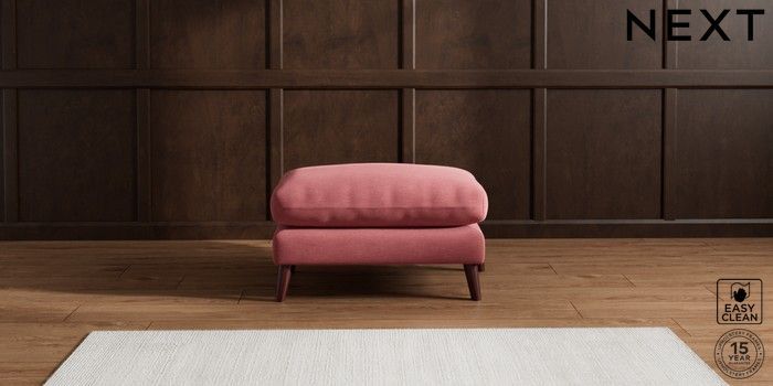 6.12.1 Buy Orlo Relaxed Sit Footstool Fine Chenille Easy Clean Mid Pink Retro Tapered - Dark Brown from the Next UK online shop Click here to use our accessible website