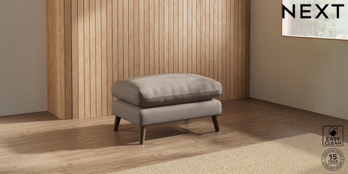 6.12.1 Buy Orlo Relaxed Sit Footstool Fine Chenille Easy Clean Mid Taupe Brown Retro Tapered - Mid from the Next UK online shop Click here to use our accessible website