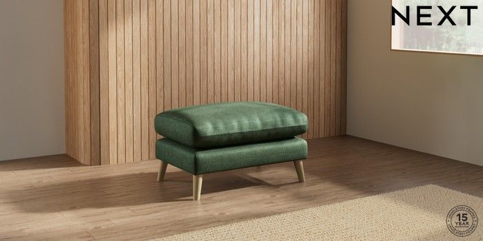 6.12.1 Buy Orlo Relaxed Sit Footstool Luxe Chenille Dark Green Retro Tapered - Light from the Next UK online shop Click here to use our accessible website
