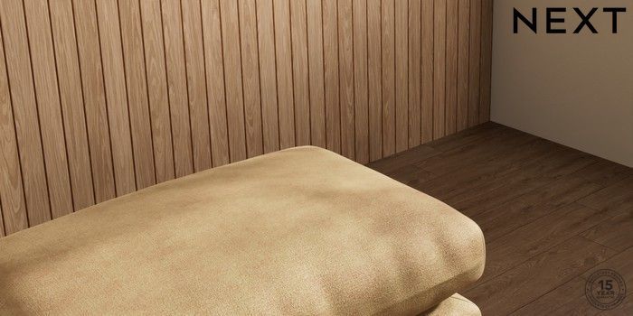 7.0.3 Buy Orlo Relaxed Sit Footstool Luxe Chenille Honey Yellow Retro Tapered - Dark Brown from the Next UK online shop Click here to use our accessible website