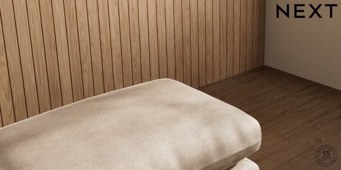 6.12.1 Buy Orlo Relaxed Sit Footstool Luxe Chenille Mid Camel Beige Retro Tapered - Dark from the Next UK online shop Click here to use our accessible website