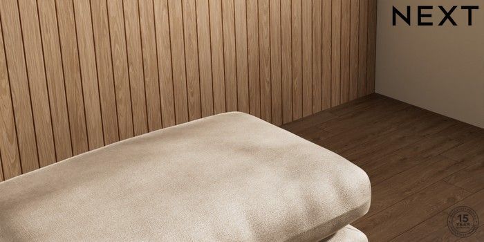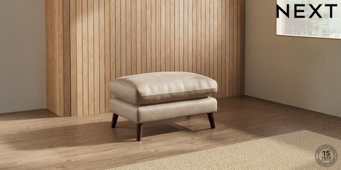 6.12.1 Buy Orlo Relaxed Sit Footstool Luxe Chenille Mid Camel Beige Retro Tapered - Dark Brown from the Next UK online shop Click here to use our accessible website