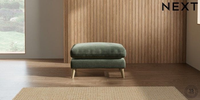 6.12.1 Buy Orlo Relaxed Sit Footstool Luxe Chenille Mid Green Retro Tapered - Light from the Next UK online shop Click here to use our accessible website