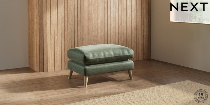 7.0.3 Buy Orlo Relaxed Sit Footstool Luxe Chenille Mid Green Retro Tapered - Light from the Next UK online shop Click here to use our accessible website