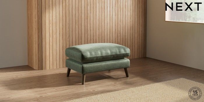 7.0.3 Buy Orlo Relaxed Sit Footstool Luxe Chenille Mid Green Retro Tapered - Mid from the Next UK online shop Click here to use our accessible website