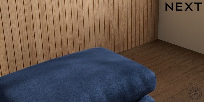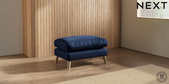 6.12.1 Buy Orlo Relaxed Sit Footstool Luxe Chenille Navy Blue Retro Tapered - Light from the Next UK online shop Click here to use our accessible website
