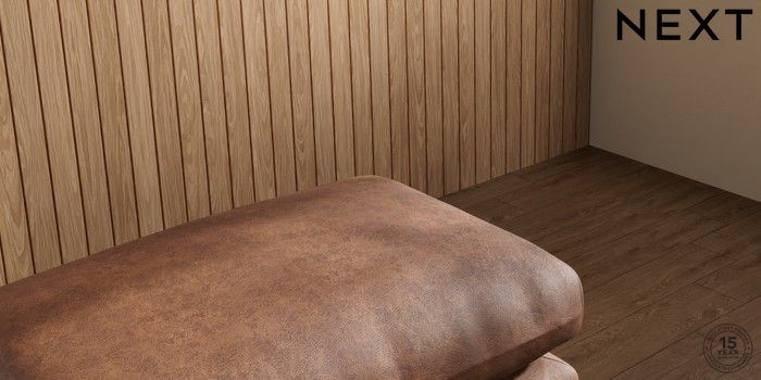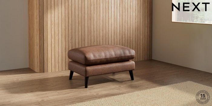 6.12.1 Buy Orlo Relaxed Sit Footstool Monza Faux Leather Easy Clean Chestnut Brown Retro Tapered - Dark from the Next UK online shop Click here to use our accessible website