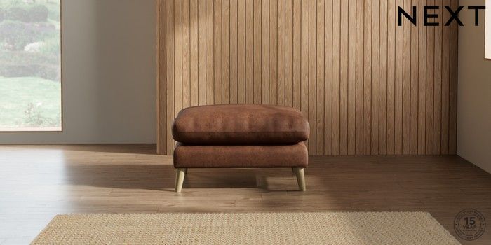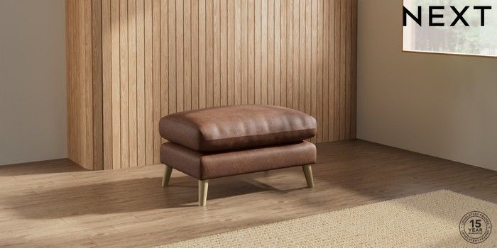 6.12.1 Buy Orlo Relaxed Sit Footstool Monza Faux Leather Easy Clean Chestnut Brown Retro Tapered - Light from the Next UK online shop Click here to use our accessible website