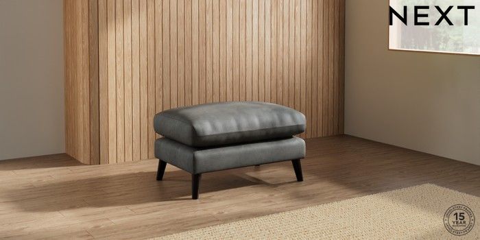 6.12.1 Buy Orlo Relaxed Sit Footstool Monza Faux Leather Easy Clean Dark Grey Retro Tapered - Dark from the Next UK online shop Click here to use our accessible website