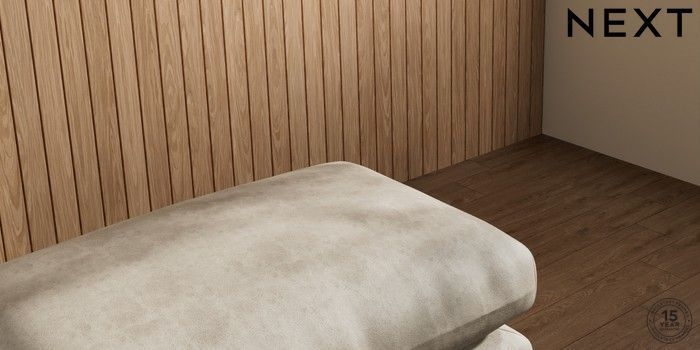 6.12.1 Buy Orlo Relaxed Sit Footstool Monza Faux Leather Easy Clean Mink Brown Retro Tapered - Mid from the Next UK online shop Click here to use our accessible website