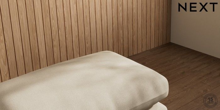 6.12.1 Buy Orlo Relaxed Sit Footstool Natural Mix Light Natural Retro Tapered - Dark Brown from the Next UK online shop Click here to use our accessible website