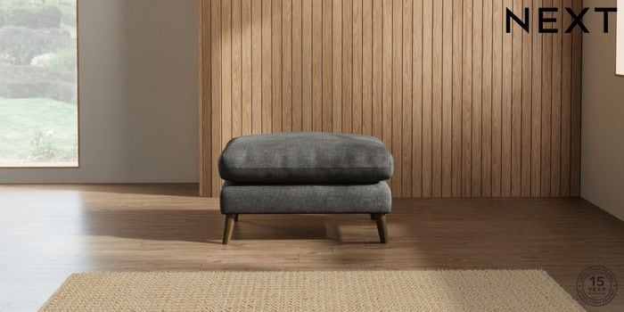 6.12.1 Buy Orlo Relaxed Sit Footstool Plush Chenille Dark Grey Retro Tapered - Mid from the Next UK online shop Click here to use our accessible website