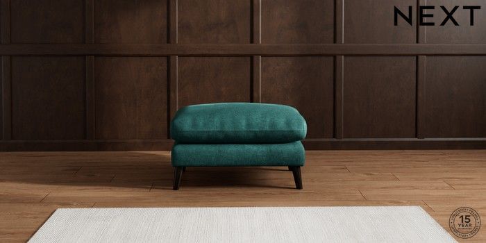 6.12.1 Buy Orlo Relaxed Sit Footstool Plush Chenille Dark Teal Green Retro Tapered - Dark from the Next UK online shop Click here to use our accessible website