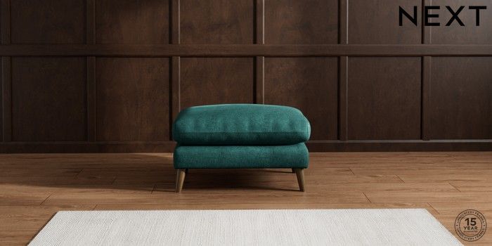 6.12.1 Buy Orlo Relaxed Sit Footstool Plush Chenille Dark Teal Green Retro Tapered - Mid from the Next UK online shop Click here to use our accessible website