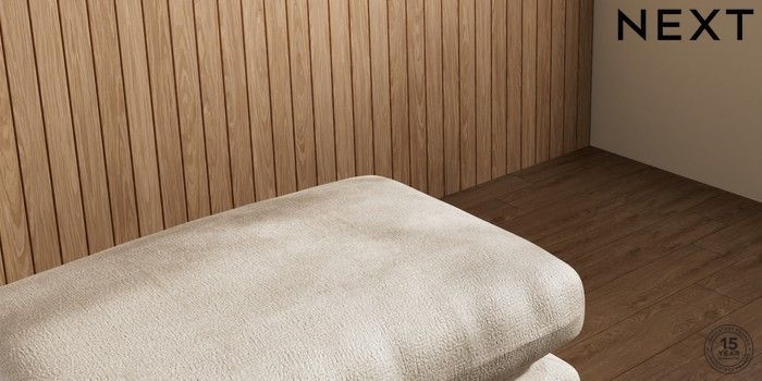 6.12.1 Buy Orlo Relaxed Sit Footstool Plush Chenille Light Natural Retro Tapered - Light from the Next UK online shop Click here to use our accessible website