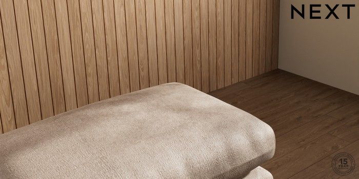 6.12.1 Buy Orlo Relaxed Sit Footstool Plush Chenille Mid Natural Retro Tapered - Dark from the Next UK online shop Click here to use our accessible website