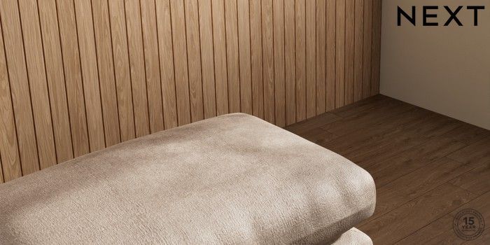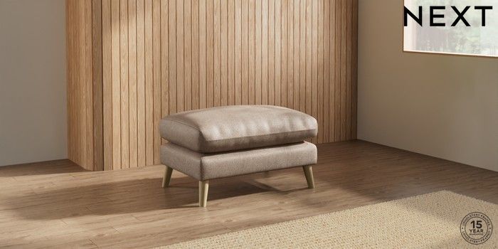 6.12.1 Buy Orlo Relaxed Sit Footstool Plush Chenille Mid Natural Retro Tapered - Light from the Next UK online shop Click here to use our accessible website