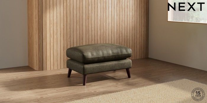 6.12.1 Buy Orlo Relaxed Sit Footstool Plush Chenille Moss Green Retro Tapered - Dark Brown from the Next UK online shop Click here to use our accessible website