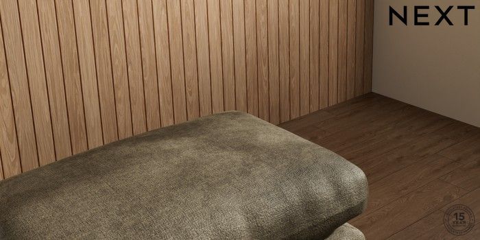 6.12.1 Buy Orlo Relaxed Sit Footstool Plush Chenille Moss Green Retro Tapered - Mid from the Next UK online shop Click here to use our accessible website