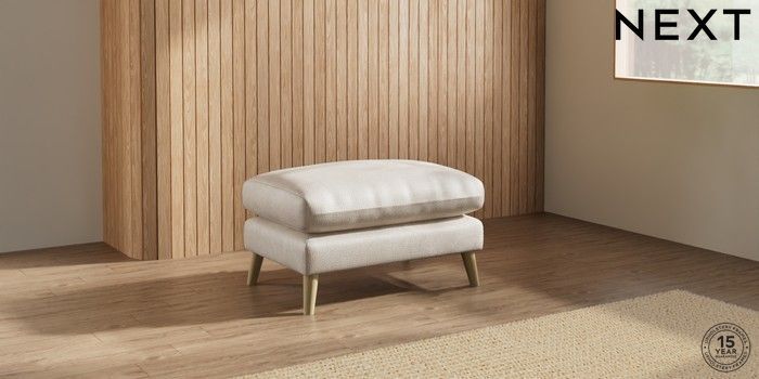 6.12.1 Buy Orlo Relaxed Sit Footstool Plush Chenille Oyster Retro Tapered - Light from the Next UK online shop Click here to use our accessible website