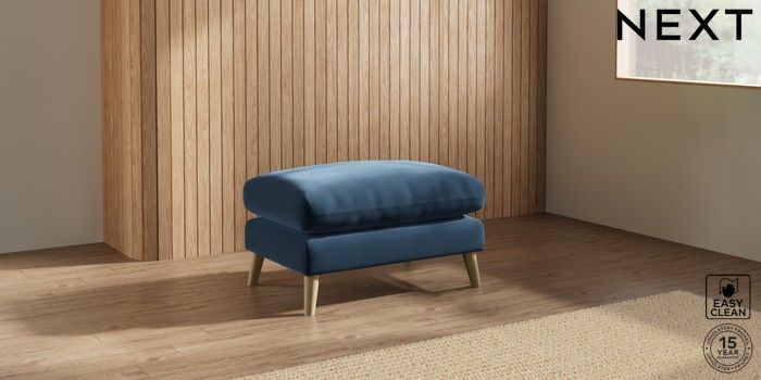 6.12.1 Buy Orlo Relaxed Sit Footstool Plush Velvet Easy Clean Airforce Blue Retro Tapered - Light from the Next UK online shop Click here to use our accessible website