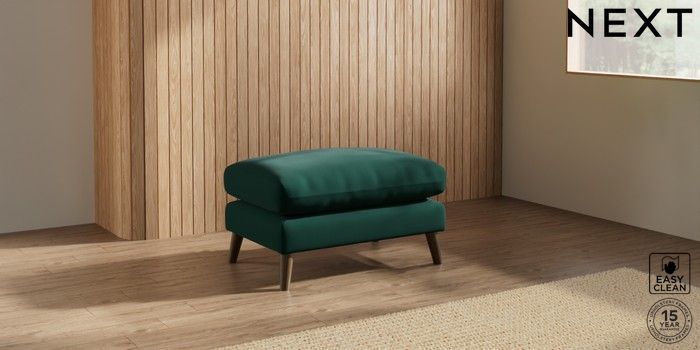 6.12.1 Buy Orlo Relaxed Sit Footstool Plush Velvet Easy Clean Bottle Green Retro Tapered - Mid from the Next UK online shop Click here to use our accessible website