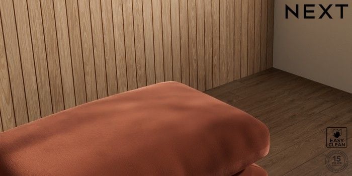 6.12.1 Buy Orlo Relaxed Sit Footstool Plush Velvet Easy Clean Ginger Orange Retro Tapered - Dark Brown from the Next UK online shop Click here to use our accessible website