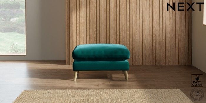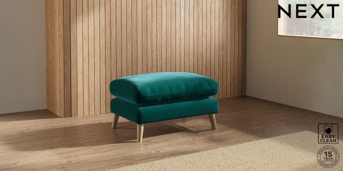 6.12.1 Buy Orlo Relaxed Sit Footstool Plush Velvet Easy Clean Juniper Green Retro Tapered - Light from the Next UK online shop Click here to use our accessible website