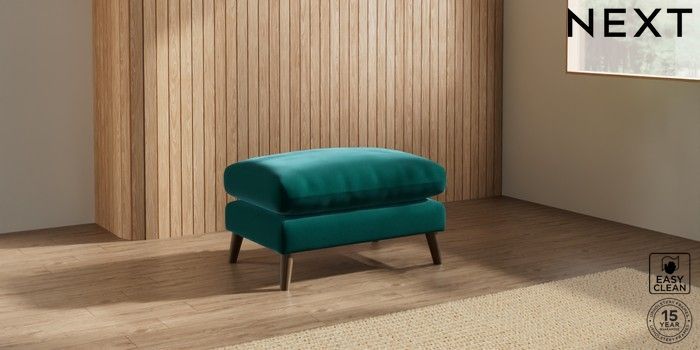 6.12.1 Buy Orlo Relaxed Sit Footstool Plush Velvet Easy Clean Juniper Green Retro Tapered - Mid from the Next UK online shop Click here to use our accessible website