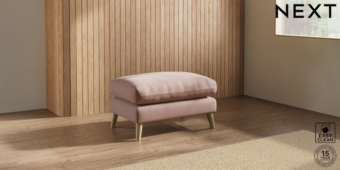 6.12.1 Buy Orlo Relaxed Sit Footstool Plush Velvet Easy Clean Mid Natural Retro Tapered - Light from the Next UK online shop Click here to use our accessible website