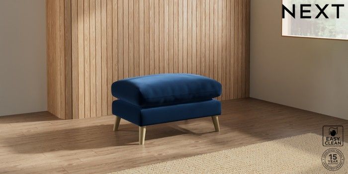 6.12.1 Buy Orlo Relaxed Sit Footstool Plush Velvet Easy Clean Navy Blue Retro Tapered - Light from the Next UK online shop Click here to use our accessible website