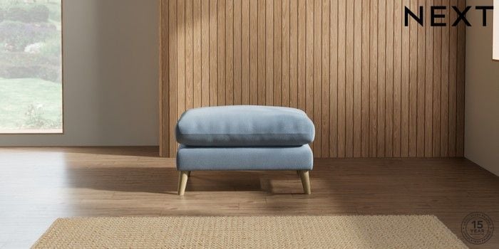 6.12.1 Buy Orlo Relaxed Sit Footstool Relaxed Linen Look Mid Blue Retro Tapered - Light from the Next UK online shop Click here to use our accessible website