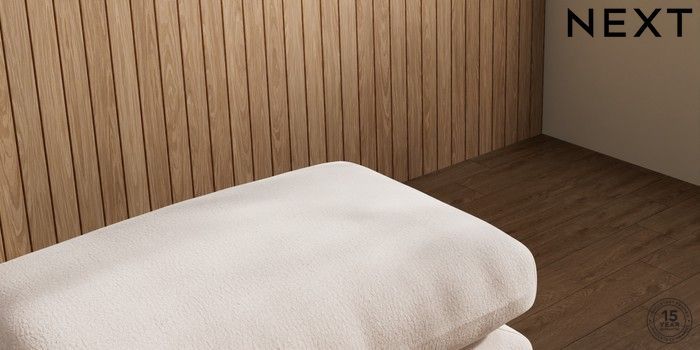 6.12.1 Buy Orlo Relaxed Sit Footstool Relaxed Linen Look Mid Natural Retro Tapered - Dark from the Next UK online shop Click here to use our accessible website