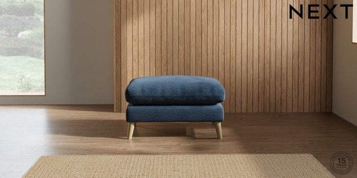 6.12.1 Buy Orlo Relaxed Sit Footstool Ripple Chenille Dark Blue Retro Tapered - Light from the Next UK online shop Click here to use our accessible website